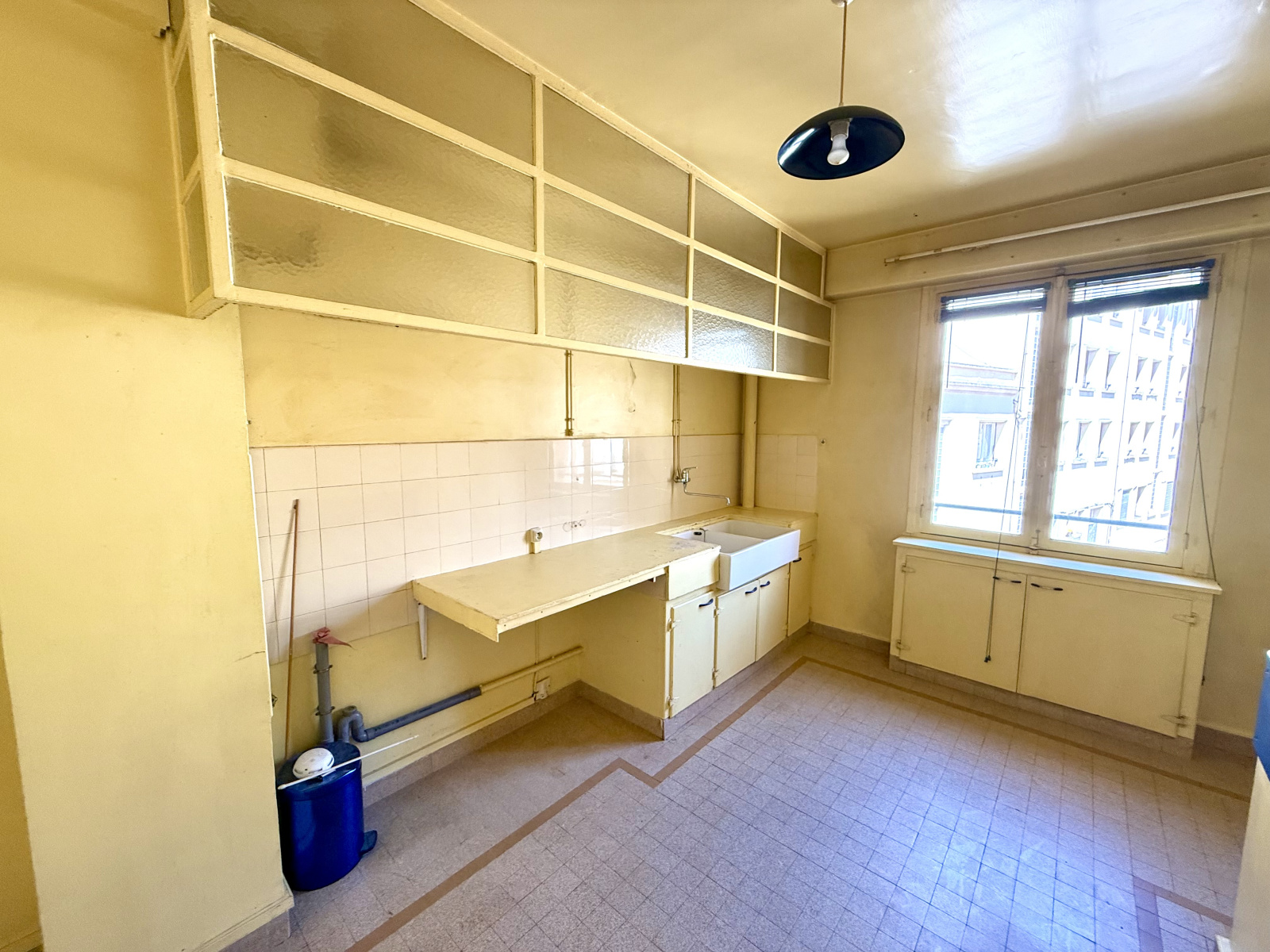 ROUEN CENTRE dans résidence avec ascenseur appartement 3 pièces à renover comprenant : entrée, séjour, salon, chambre, grande cuisine, salle de bains, wc. Possibilité de 2 chambres. Exposition SUD