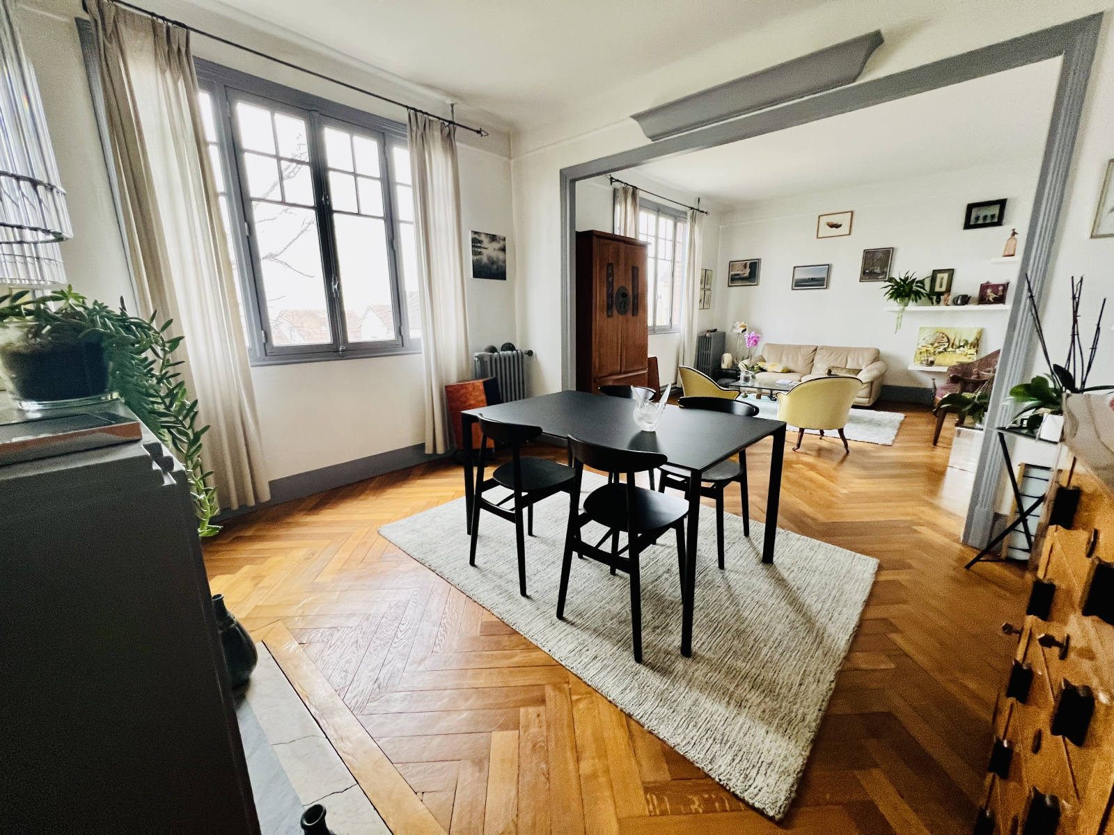 Magnifique maison individuelle année 30 d'environ 180m² avec belles hauteurs sous plafonds comprenant une belle entrée desservant un grand salon-salle à manger avec cheminée, une cuisine aménagée avec accés terrasse à l'abri des regards, une grande chambre en rez de chaussée avec sa salle de douche, wc individuel avec lave mains, à l'étage un grand palier avec placard desservant 4 grandes chambres, une salle de bains, une deuxième salle de bains avec baignoire et douche, wc. Sous-sol avec cave, chaufferie et rangement. Garage. Jardin.